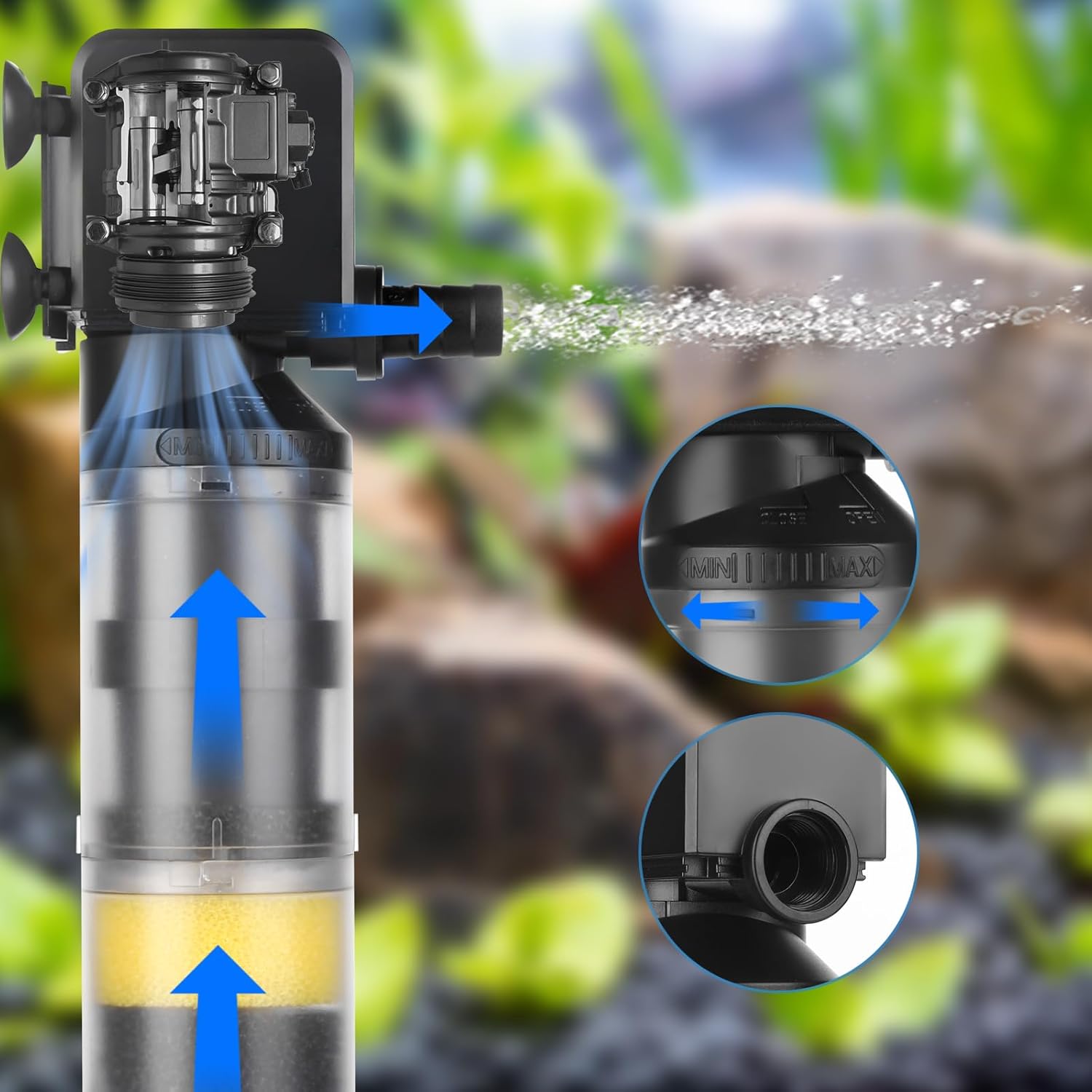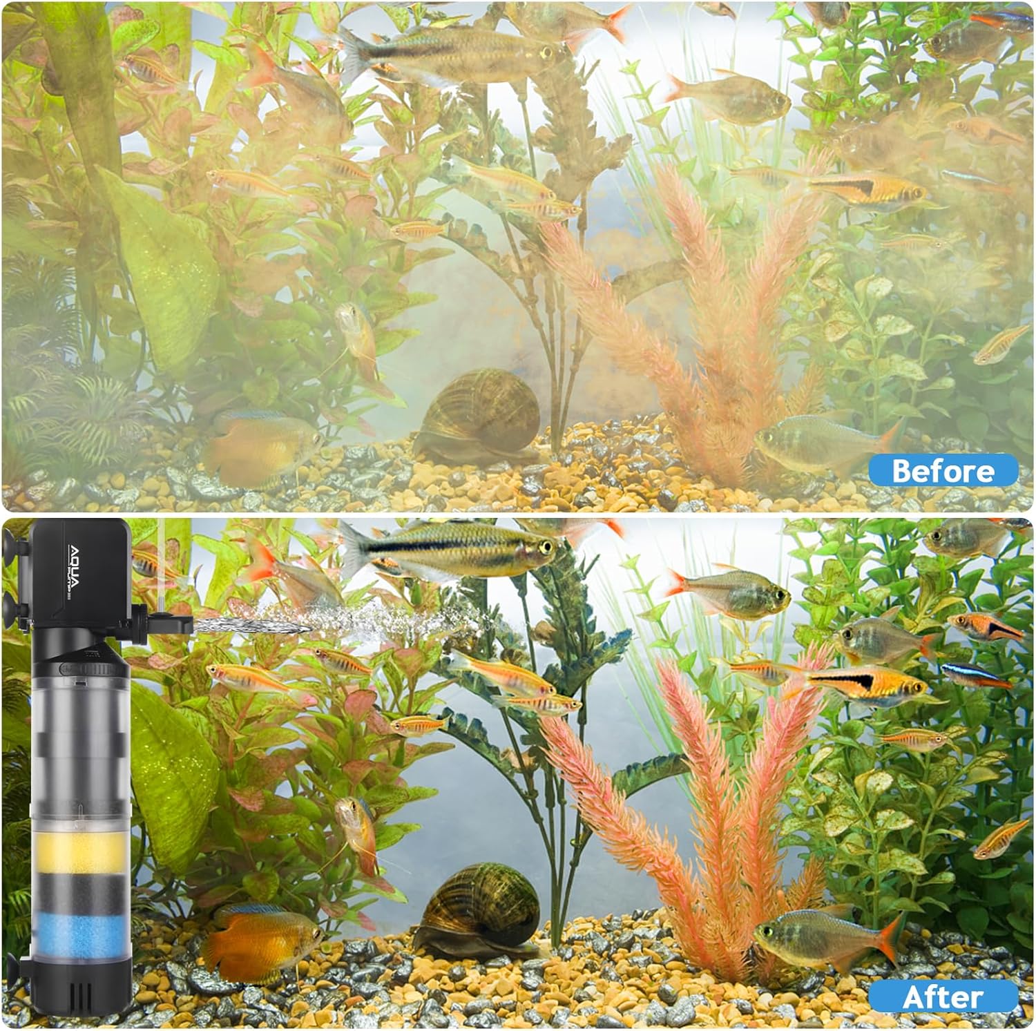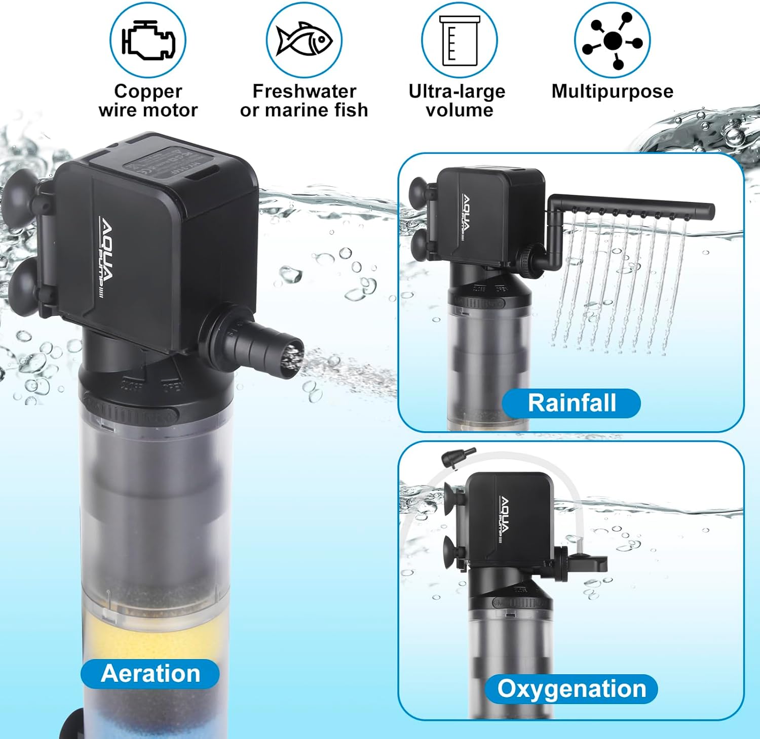 🐟[Fully Submersible to Keep Safe]: The aquarium filter is fully submersible with epoxy sealed motor. Each fish tank filter has been submerged in water and tested with super high voltage to ensure the safety.